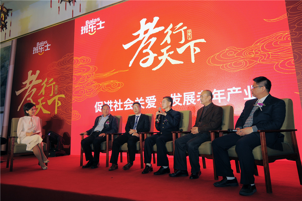 (4月18日班樂士于北京人民大會堂啟動孝行公益活動,現場嘉賓就“孝行天下”問題進行了深入的探討)