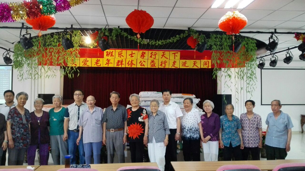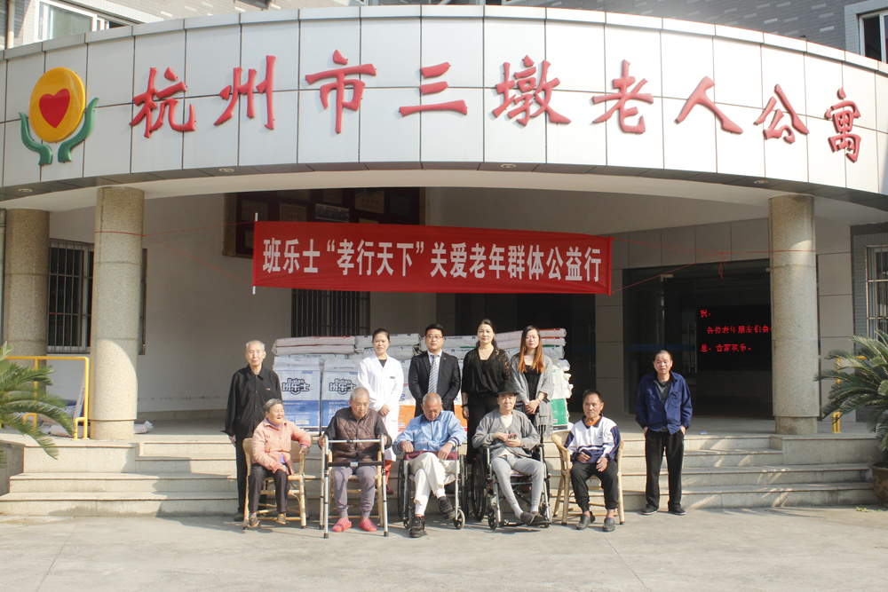 2015年10月13日,雀氏公司旗下成人護理用品品牌——班樂士攜手中國老齡事業發展基金會走進杭州三墩老人公寓,開展班樂士孝行天下關愛老年群體公益行愛心捐贈儀式活動,慰問老人公寓的老人們。