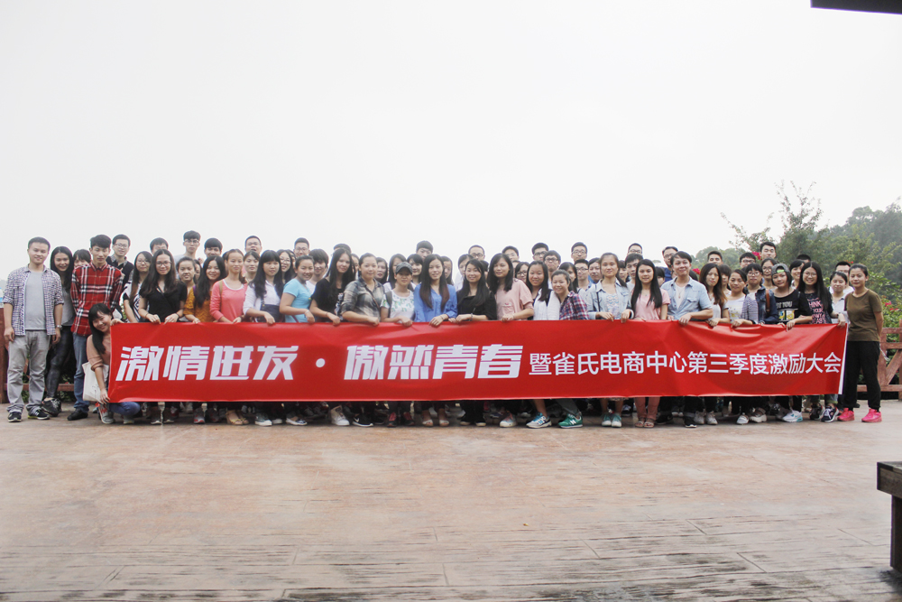 2015年10月30日,值此雀氏培訓學院成立一周年之際。由電子商務中心主辦、雀氏培訓學院承辦的“激情迸發、傲然青春”暨電商中心第三季度團隊激勵會,在繁花似錦的梅海嶺景區隆重舉行。