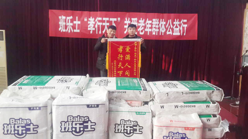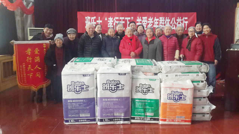 2015年4月18日,班樂士聯合中國老齡事業發展基金會發起孝行天下,關愛老年群體公益行系列活動。自項目啟動之日起,班樂士愛心公益捐贈活動走進全國十余家敬老院,為老人們送去了專為老年人研發設計的班樂士成人護理用品,用實際行動關懷著每一位老人。
