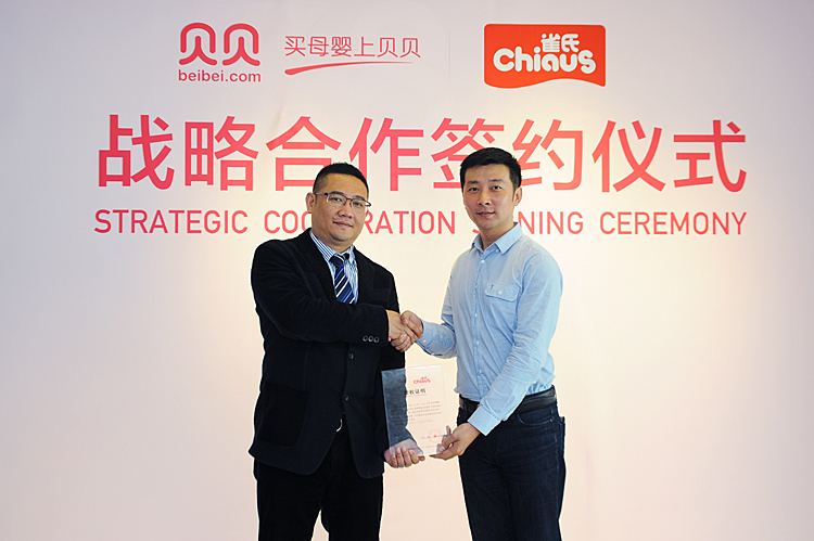 雀氏董事鄭佳毅與貝貝網營銷副總裁蔣雨辰啟動簽約儀式