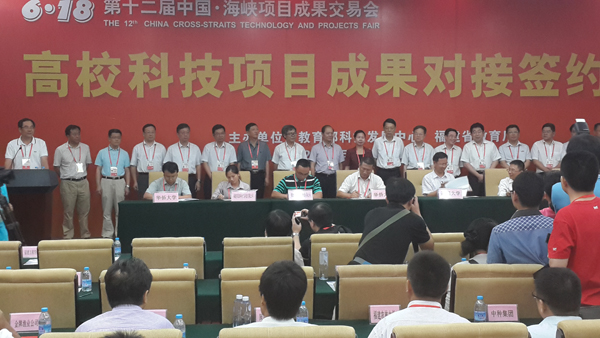教育部科技發展中心、福建省教育廳共同主辦的高??萍柬椖砍晒麑雍灱s儀式作為第十二屆中國·海峽項目成果交易會的重頭戲于6月18日下午在福州海峽國際會展中心舉行。省政協副主席薛衛民、省教育廳廳長鞠維強出席本次對接簽約儀式,同時邀請到各高校領導參加本次簽約儀式。