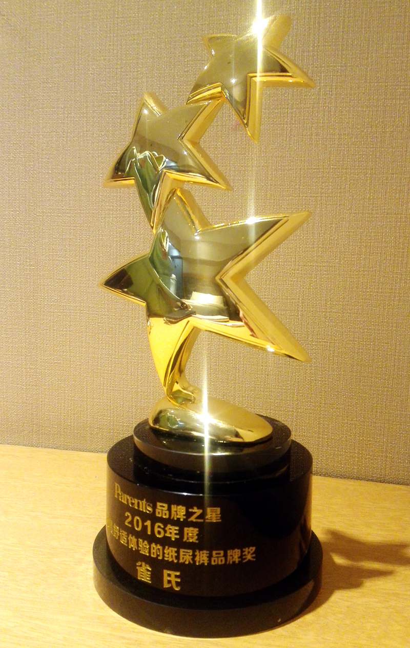 2016年12月5日,由貝塔斯曼傳媒集團與京東聯合主辦的“parents品質育兒”—— 第七屆品牌之星頒獎盛典在北京亦莊京東總部盛大舉行。本次盛典不僅匯聚了各大行業優秀品牌、資深專家學者及行業精英, 更有明星超媽、網紅大咖鼎力加盟。雀氏作為國內紙尿褲領導品牌,也受邀參與了此次盛典,并在本次品牌調研評選中榮獲“達人媽媽推薦獎“,成為90后達人媽媽們最推薦的紙尿褲品牌,該獎項是雀氏品牌2016年斬獲的第八個品牌營銷方面的權威獎項。