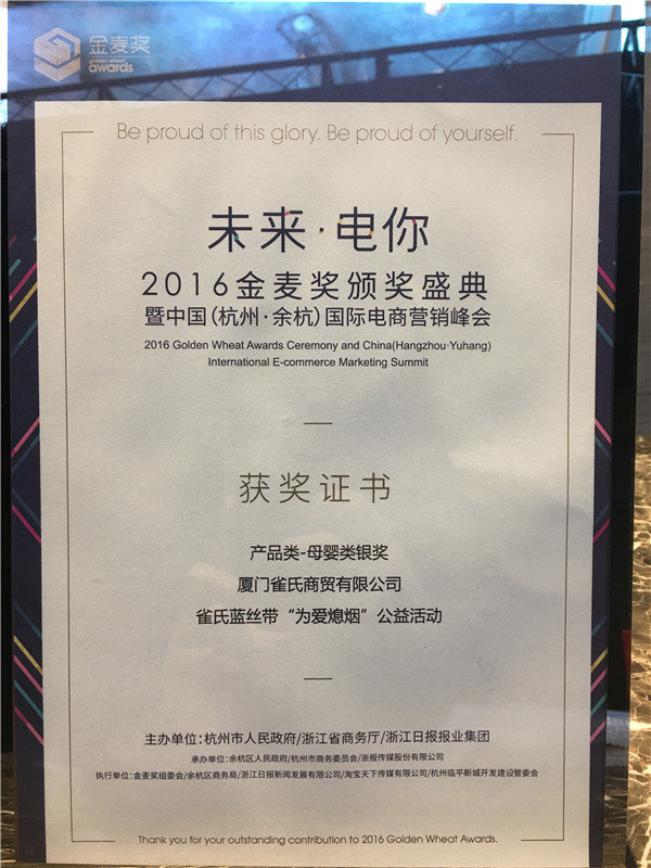 本次活動以“未來·電你”為核心主題,從電商營銷、品牌、數據以及跨界創新等多角度解讀“互聯網+”時代戰略,呈現了一場電商佼佼者間的PK。雀氏在此次巔峰盛宴中斬獲“2016金麥獎母嬰產品類銀獎”