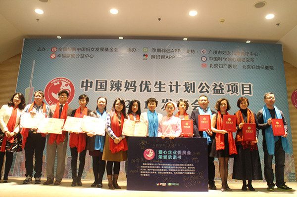 3月7日上午,由全國婦聯中國婦女發展基金會主辦、辣媽幫共同開展的“守護童年•中國辣媽優生計劃”公益項目2017年啟動會在廣州市婦女兒童醫療中心召開。雀氏集團榮獲中國婦女發展基金會頒發的愛心企業證明。集團董事鄭佳毅先生,與其他愛心企業代表一同上臺,與協辦單位一同發起守護寶貝童年的聯合倡議。