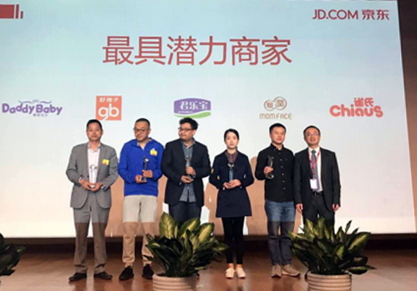 2017年4月11日,以“聚力 · 突破 · 共贏”為主題的京東母嬰開放平臺商家大會在北京京東大樓隆重召開,本次大會由京東超市聯合京東母嬰、中國玩具和嬰童用品協會、媽媽網、樂高教育、360兒童衛士、父母世界Parents共同舉辦。雀氏集團作為京東母嬰的重要合作伙伴,受邀出席了本次活動,并榮獲了“2017京東母嬰最具潛力商家”獎。