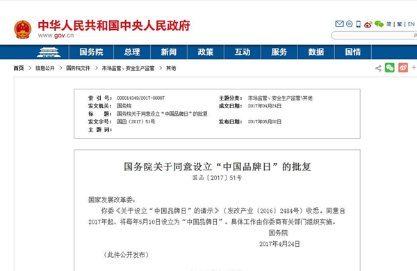 品牌界一致認為2014年為“中國品牌元年”,同時呼吁將5月10日設為“中國(好)品牌日”,并召開每年一屆“中國(好)品牌日大會”。終于,在今年4月,“中國品牌日”獲國家層面批復。
