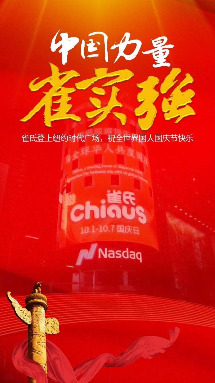 而今天,紐約時代廣場被雀氏承包啦!2017年10月1日,雀氏承包了美國紐約時代廣場納斯達克大屏,是首個在紐約時代廣場登錄的尿褲品牌!雀氏今年在這里慶祝祖國68周年華誕!
