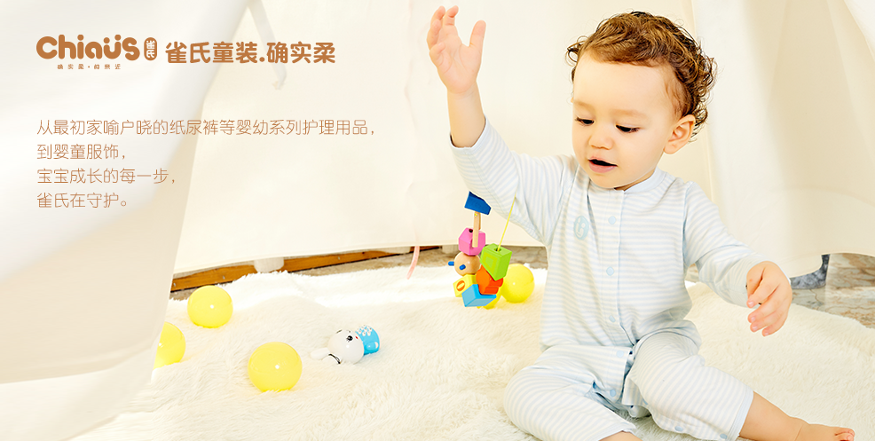 寶寶每更換一次衣服,就朝著成長邁進一大步,雀氏始終以潤物無聲的呵護陪伴在寶寶左右。與父母一同感受迎接新生的喜悅,以至柔品質給寶寶最好的保護。從紙尿褲護理拓展到童裝領域,雀氏始終致力于為每一位天才寶寶提供貼心舒適的成長體驗,成為兒童高品質舒適生活的倡導者。進軍童裝市場,只是雀氏國際化戰略大棋的其中一步。當前,中國智造的品質革命時代已經來臨,以雀氏為代表的中國紙尿褲已經走向世界,用品質紙尿褲為“中國智造”發聲。未來,雀氏將不忘初心,牢記使命,繼續以優質產品贏得口碑與信賴,以中國品質征服世界,服務于全世界的寶寶,與千萬父母一起書寫美好未來!