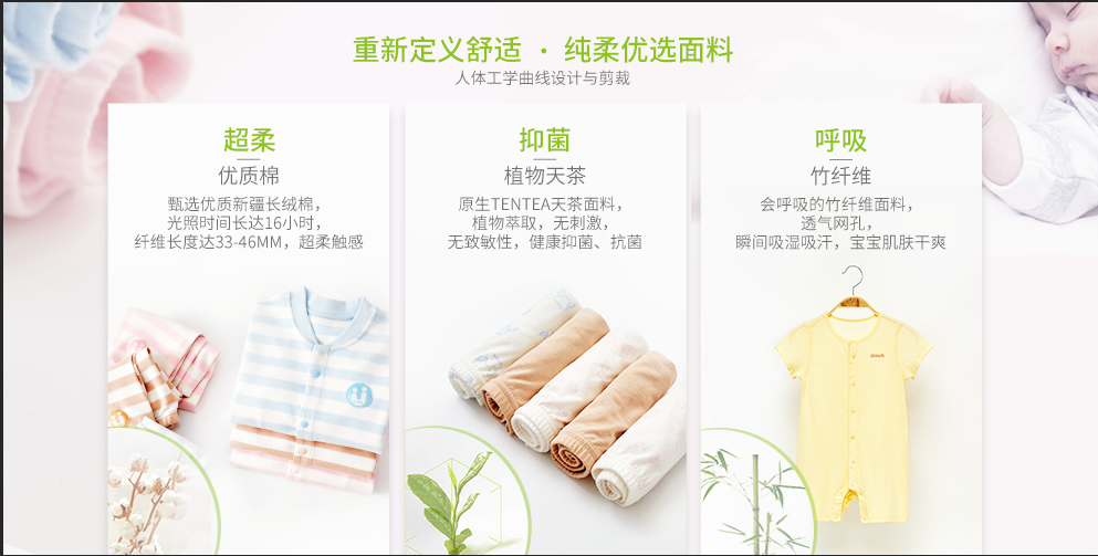 穿著舒適是兒童服飾的第一要義,在面料選擇方面,雀氏還更多考量到寶寶的健康需求。精選柔滑綿軟的竹纖維,抗菌抑菌吸水透氣,綠色環保還能防紫外線,讓寶寶穿著更舒適。原生天茶面料也是雀氏童裝的首選,拒絕使用化學染料上色,從植物中萃取天然物質,致敏性幾乎為零,安全溫和無刺激,最適合寶寶敏感的肌膚。