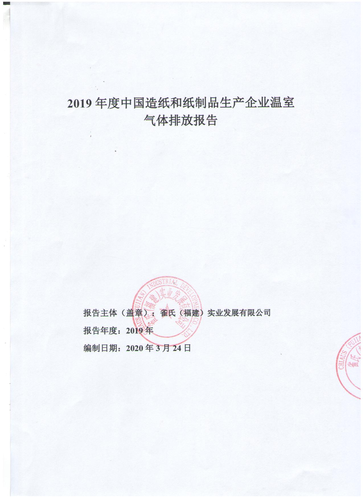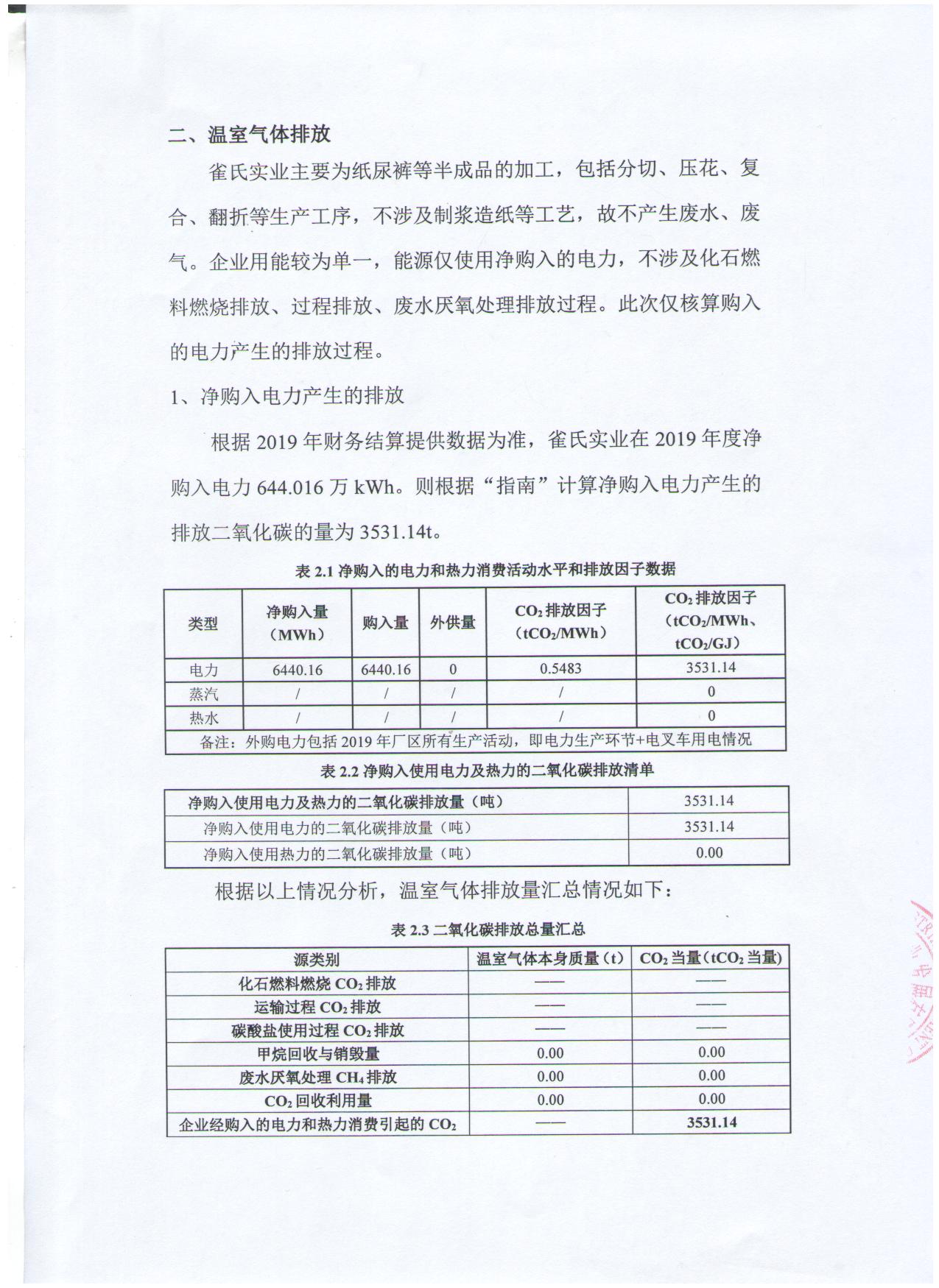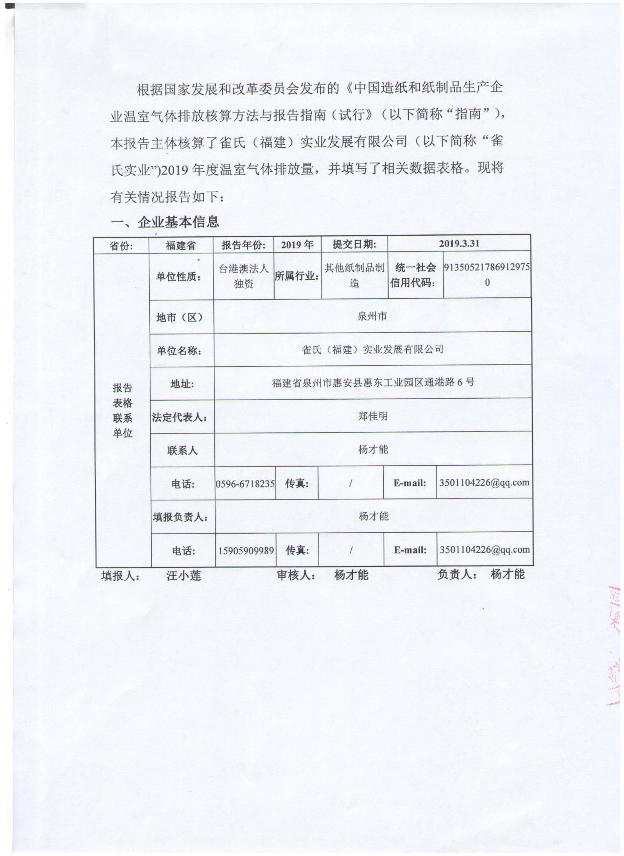 雀氏(福建)實業發展有限公司2019年碳排放核查報告