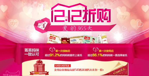 在今年的雙十一活動中,雀氏天貓旗艦店在12小時內就突破了1000萬,創歷史最高;雙十二當天雀氏所有直營平臺合計總銷量達到:400萬元,紙尿褲類目排名僅次于幫寶適和媽咪寶貝。