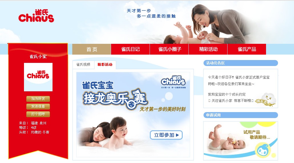 雀氏品牌小家: http://www.babytree.com/promo/chiaus/